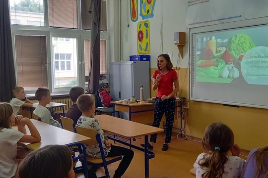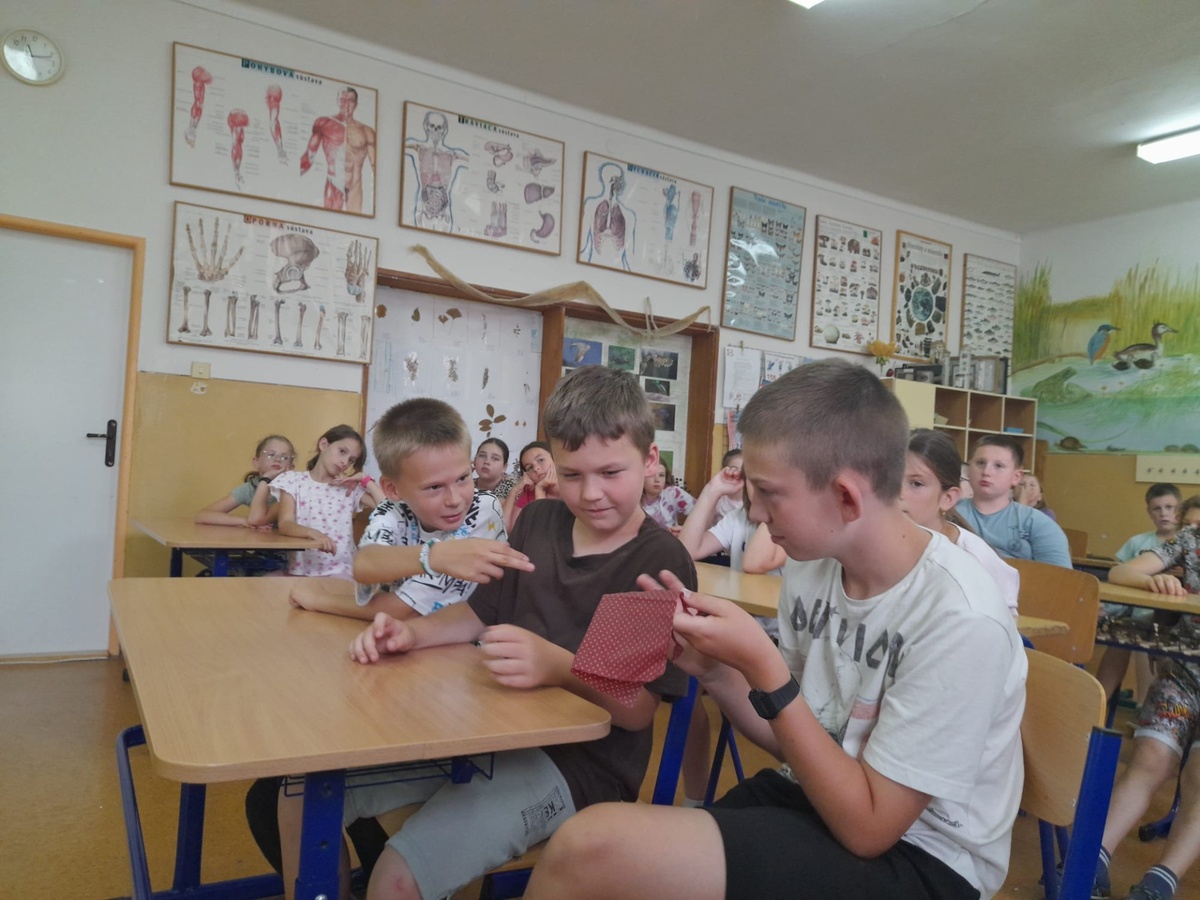 Na druhom stupni sa uskutočnil interaktívny workshop o odpadoch, počas ktorého sa žiaci dozvedeli, koľko odpadu denne vytvárame, čo sa s ním deje po vyhodení a aký vplyv má na životné prostredie. Vďaka zážitkovému učeniu si prakticky vyskúšali, ako môžeme žiť ekologickejšie – napríklad ako si pripraviť desiatu bez plastových obalov, ako nakupovať potraviny a drogériu bez zbytočných obalov či ako používať opakovateľné a udržateľné hygienické pomôcky. Záver patril hravej aktivite „Daj odpadu druhú šancu“, kde deti využili svoju fantáziu a kreatívne vymýšľali, ako ešte môžeme zmysluplne využiť veci, ktoré by inak skončili v koši – napríklad staré tričká, rolky z toaletného papiera či roztrhnuté pančuchy. Mnohé nápady boli naozaj originálne a ukázali, že s troškou kreativity môžeme z odpadu vytvoriť užitočné alebo zábavné veci. Celý deň sa niesol v duchu zážitkového učenia, spolupráce, tvorivosti a zodpovedného prístupu k životnému prostrediu. Žiaci si tak nielen upevnili svoje vedomosti, ale aj pochopili, že každodenné rozhodnutia – čo jeme, ako nakupujeme či ako nakladáme s odpadom – majú skutočný vplyv na naše zdravie aj budúcnosť planéty.