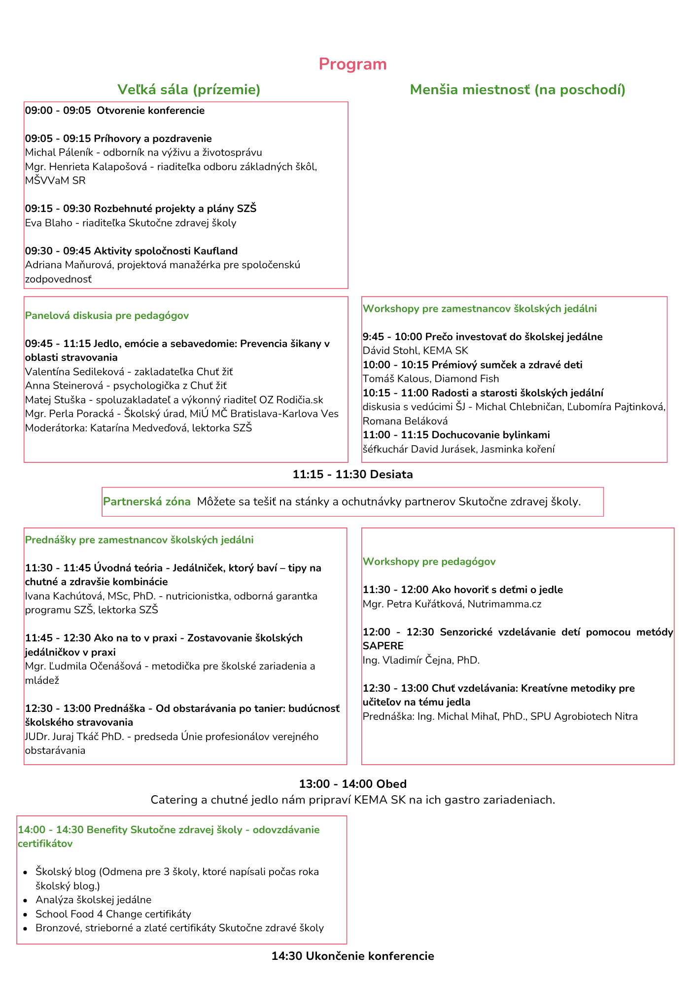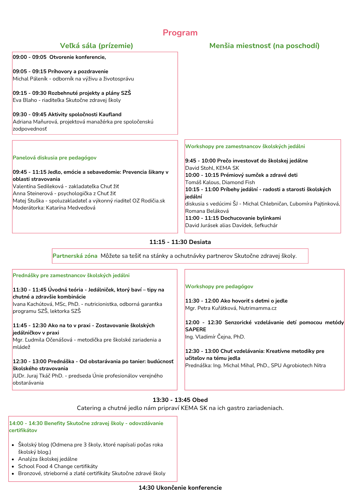 Hlavným partnerom konferencie je Nadačný fond Kaufland pri Nadácii Centra pre filantropiu a európsky HORIZONT 2020 projekt SchoolFood4Change.