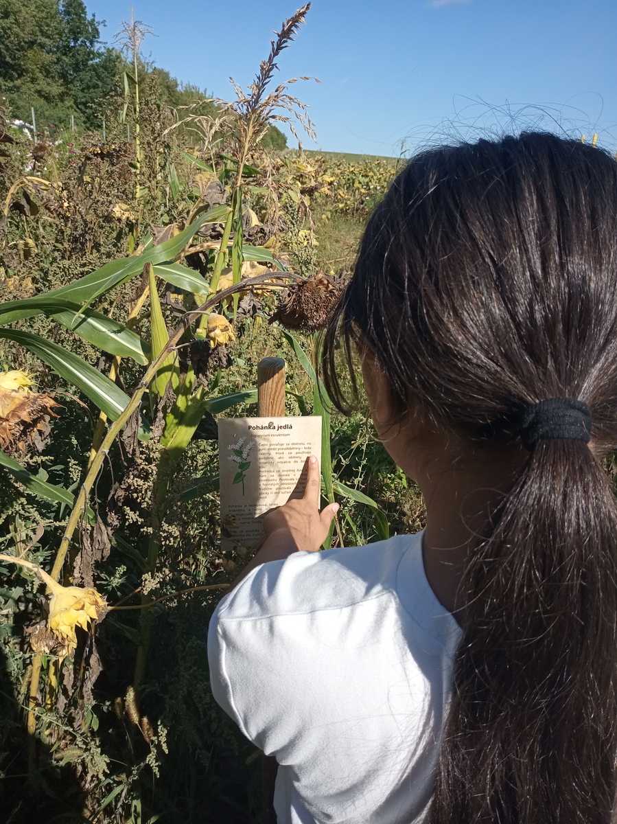 Keď sme sa nasýtili a trochu oddýchli, čakal nás labyrínt obilnín. Ak sme ním chceli prejsť museli sme ssplniť päť ťažkých úloh. Všetky sa týkali obilnín a pečiva. Naučili sme sa o obilninách, ktoré už nie su také známe ako napr. o prose, špalda, cícery, jačmeni ... , ako správne siať obilniny, ako zožať úrodu, ako pripraviť cesto na pečivo i ako sa oň podeliť. Bolo to ťažké, ale bludiskom sme našťastie prešli. Za odmenu sme sa mohli trochu zahrať na detskom ihrisku.