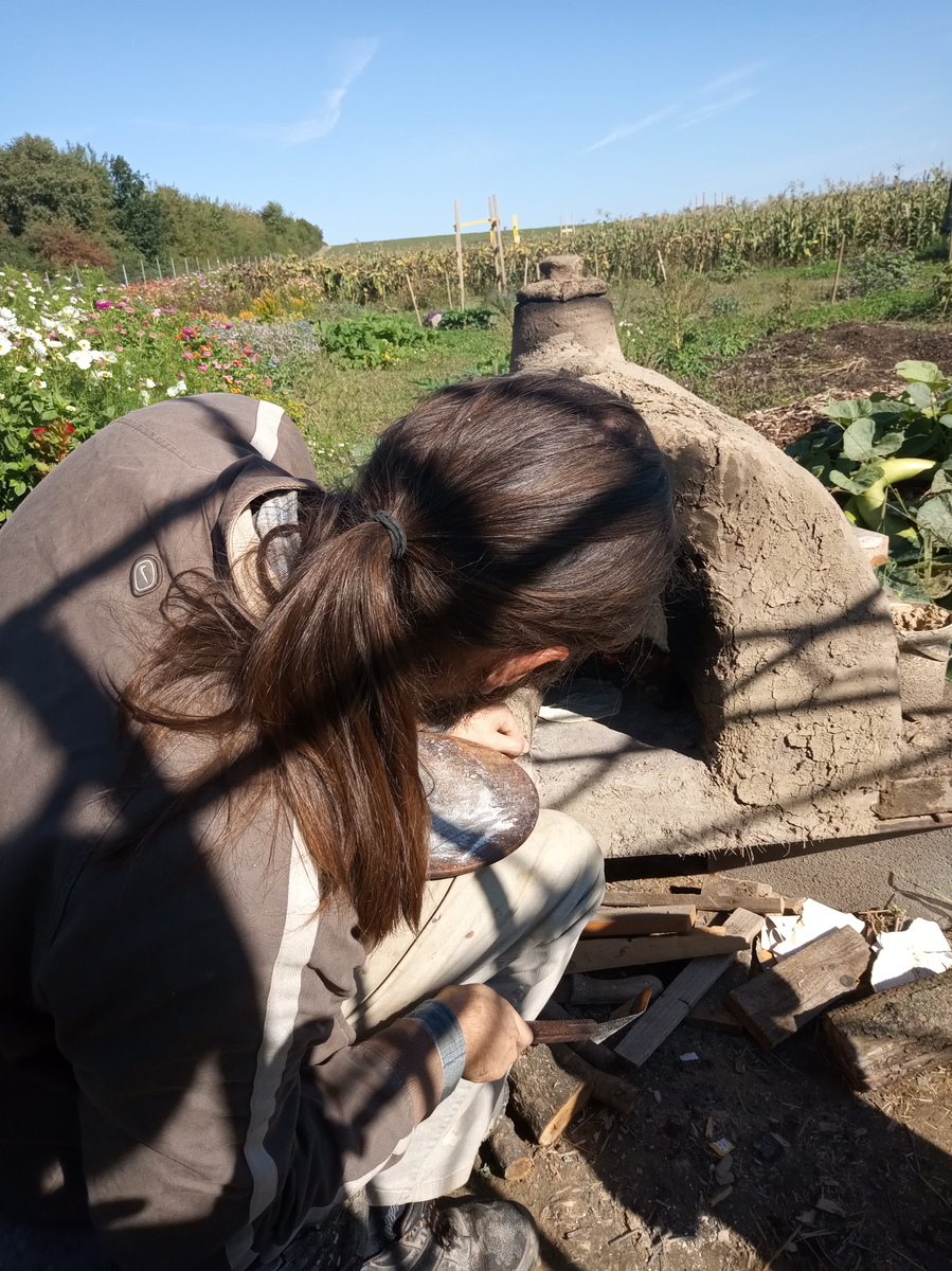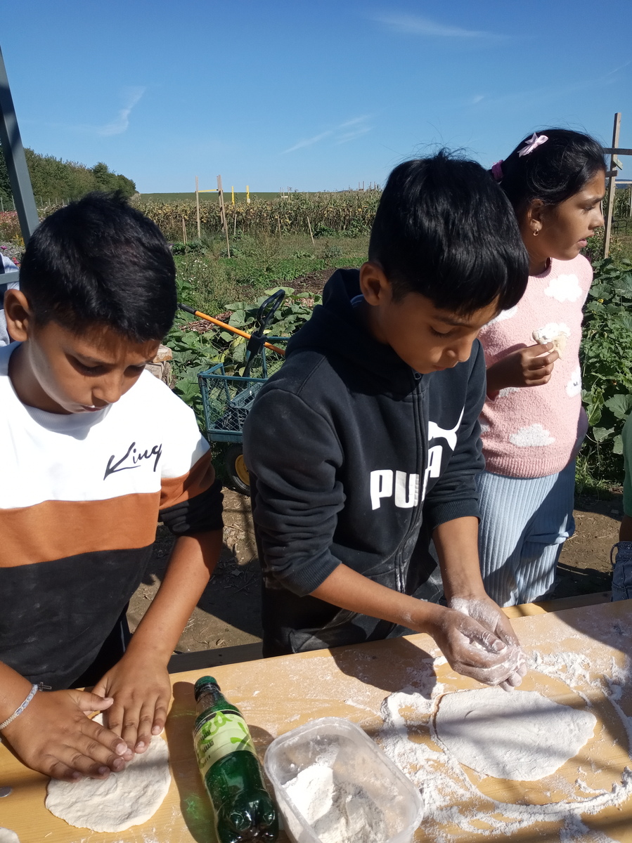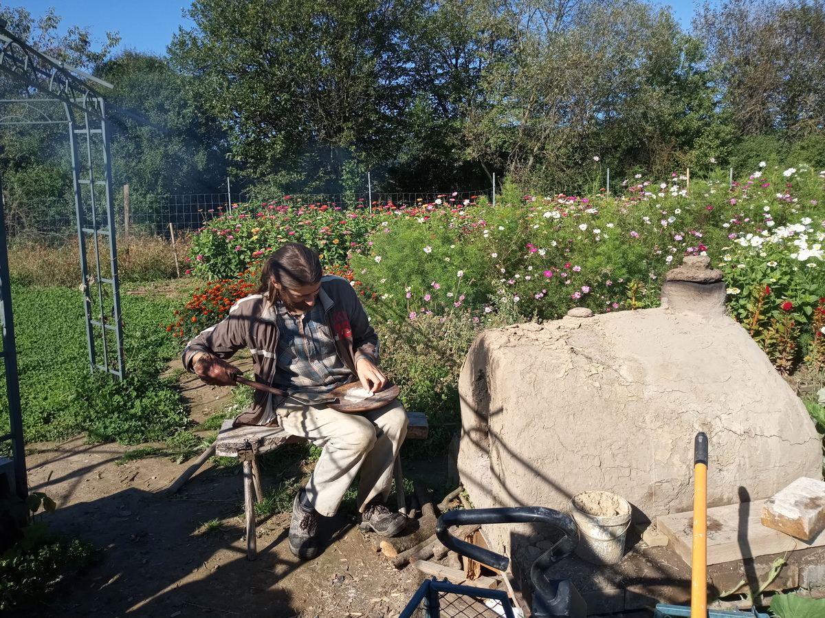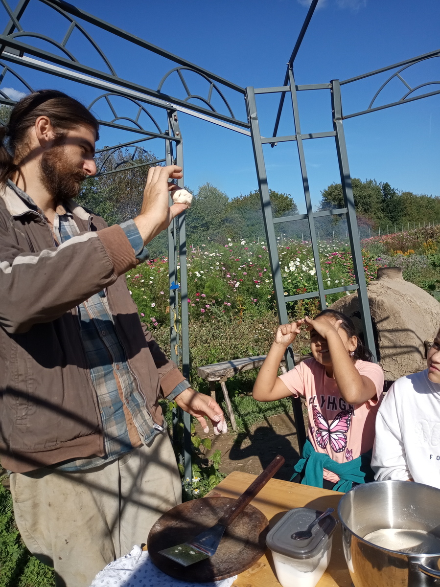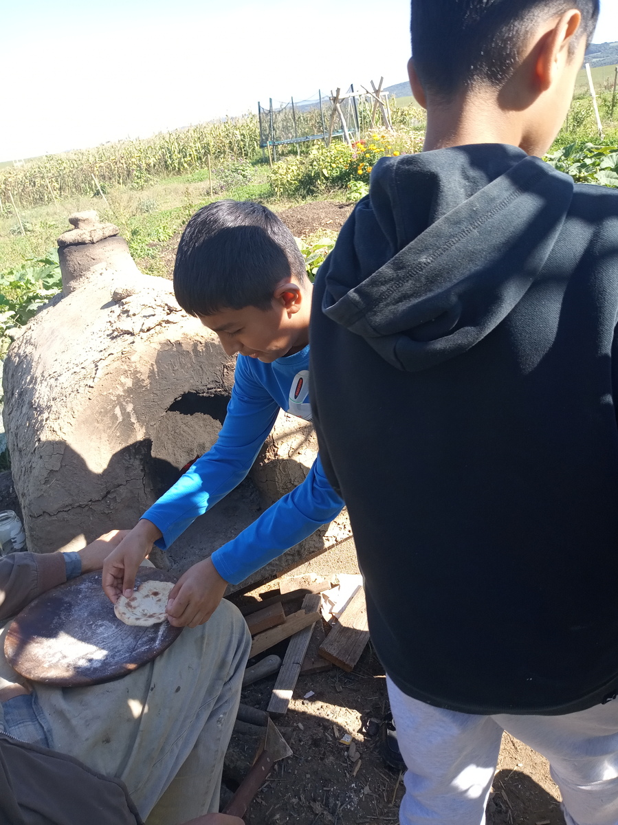 Potom sme sa presunuli ku kamenej peci, nakoľko nás zmáhal hlad. No uhasiť ho nebolo také ľahké. Najskôr sme dostali inštruktáž ako správne zarobiť a vymiesiť cesto. Potom počas kysnutia sme si museli zaspievať, aby lepšie cesto vykyslo. Vypracovať z cesta placky už bola pre nás hračka. Pri peci nás čakal o. P. Lazorik, ktorý nám tieto posúchy piekol. V ich veľkej bylinkovej záhradke sme si mohli odtrhnuť bylinku, ktorá sa nám najviac hodila ku kyslej smotane. Toľko rozmanitej vône naraz bolo pre nás priveľa , tak nám nakoniec poradila p. Lazoriková. Takú voňavú dobrotu ste určite ešte neochutnali.