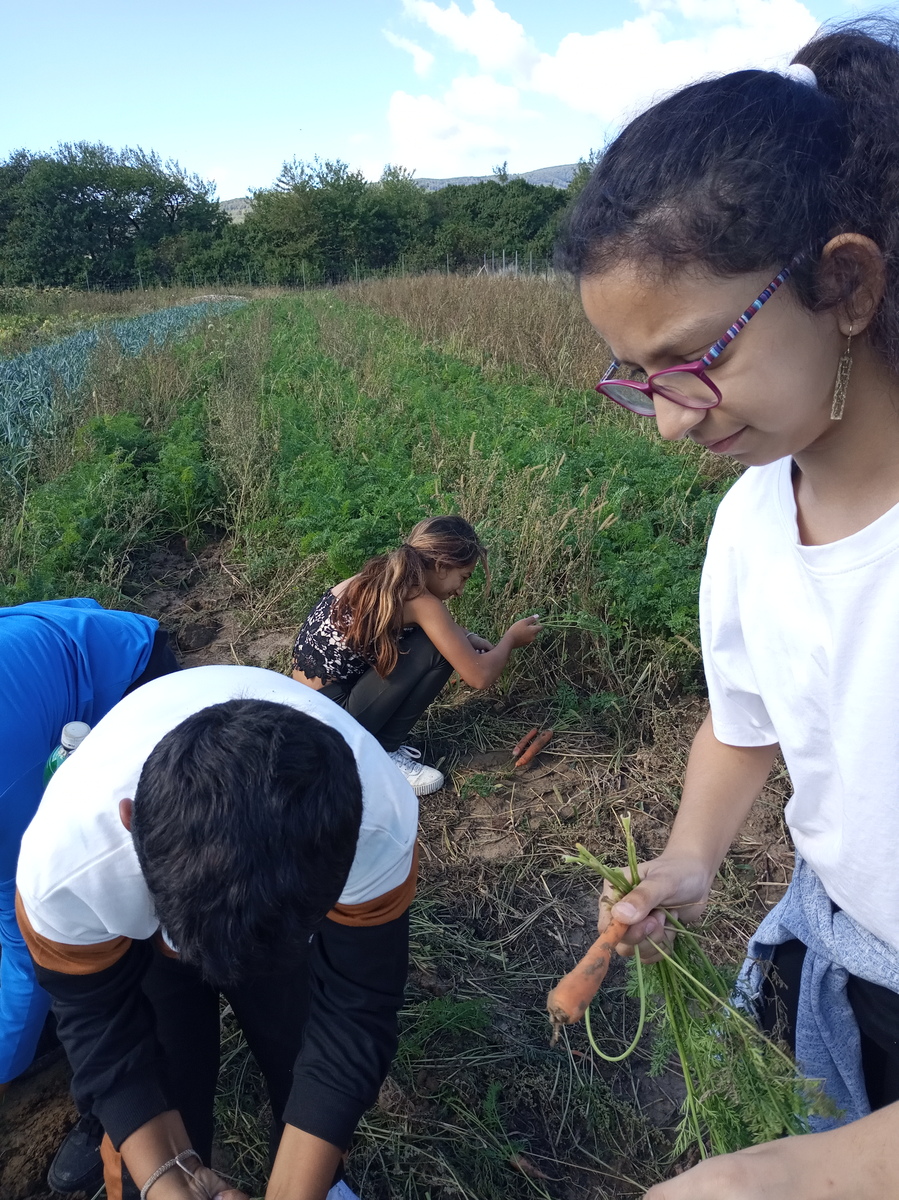 Potom sme sa presunuli na pole, kde Lazorikovci pestuju ekológickým spôsobom zeleninu. Vysvetlili nám, aký veľký prínos má tento typ zeleniny pre ľudský organizmus i pre prírodu. Keďže sme prešli úspešne testom, čakala nás opäť odmena. Tentokrát sme dostali debničku čerstvej voňavej mrkvy, ktorú sme si však museli sami zozbierať, očistiť a uložiť do debničky. Naše pani kuchárky nám z nej pripravia nielen skvelú desiatu, ale z nej ochutnajú aj žiaci druhého stupňa v rámci obeda v ŠJ.