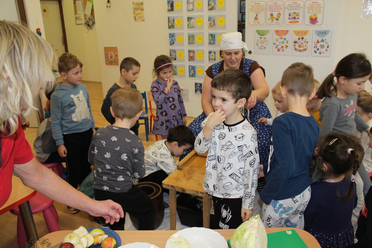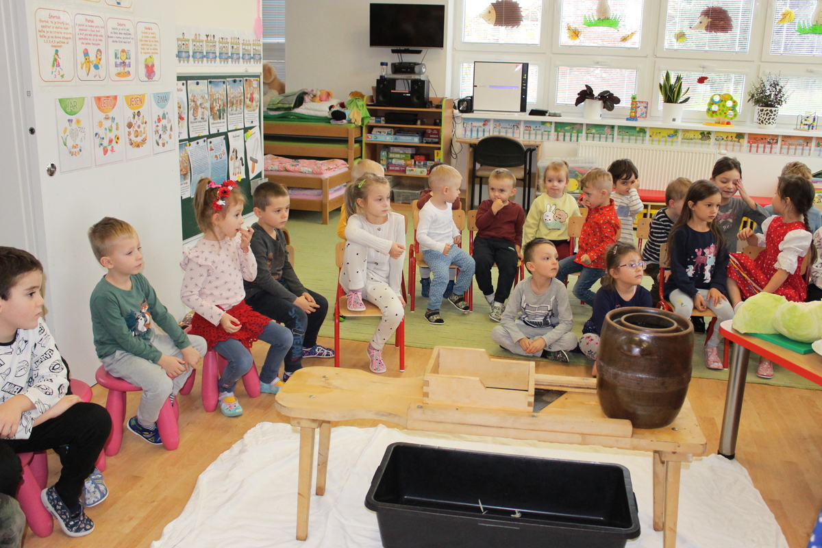 Deti pri tomto procese asistovali, pomáhali, ochutnávali i podaktoré nôžkami v sude dlávili kapustu. Počas aktivity boli oboznámené o významných zdravotných benefitoch kvasenej zeleniny na zdravie človeka.