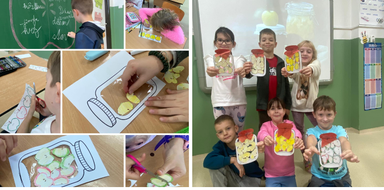 Aktivity v ŠKD pri príležitosti svetového dňa jabĺk. V našej školskej družine sme si s radosťou pripomenuli Svetový deň jabĺk. Celé popoludnie sa nieslo v znamení tejto chutnej a zdravej ovocnej pochúťky. Rozprávali sme sa o tom, prečo sú jablká zdravé, aké odrody poznáme a kde sa pestujú. Nechýbali ani zábavné súťaže – ochutnávanie jabĺk , skladanie jabĺčkových puzzle či pečenie jabĺčkových koláčikov. Najviac nás bavilo tvorivé dielničky, kde sme vyrábali jabĺčkové ozdoby, veselých ježkov z jabĺk a špáradiel. Na záver sme si pochutnali na jablkových dobrotách. Bol to veselý, voňavý a zdravý deň plný dobrej nálady!