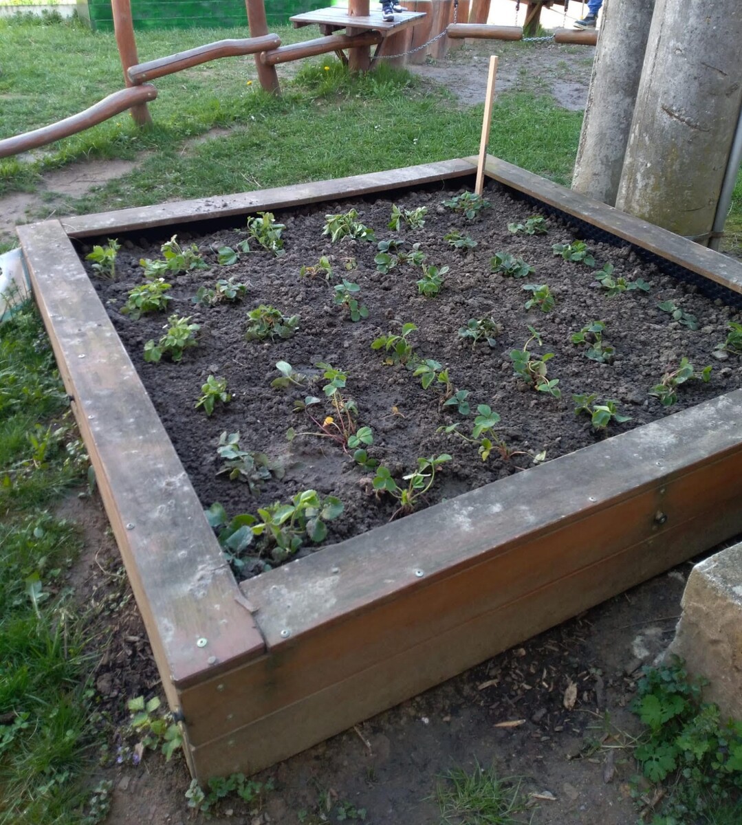 Deti spolu s pani učitelkami sadili sadenice jahôd, o ktoré sa celý rok starali. O rok nato si pochutnávali na plodoch svojej práce.