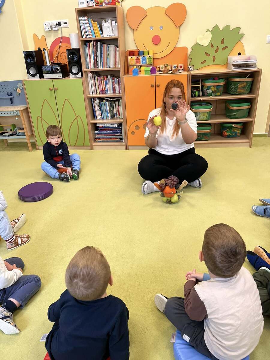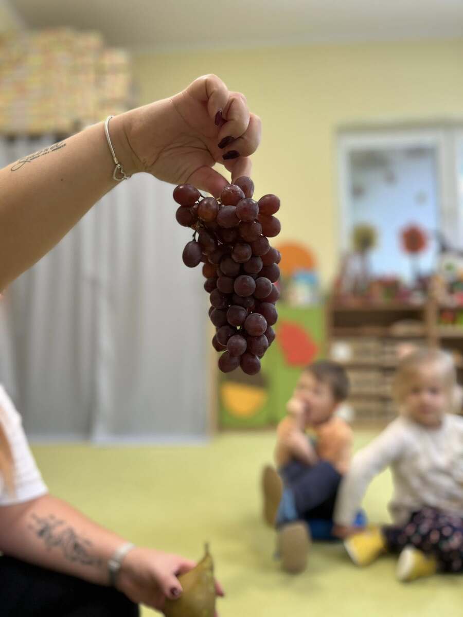 Najskôr sme si spoločne porozprávali o tom, aké ovocie rastie na jeseň. Vďaka programu Lunys se mali k dispozícii hrozno, slivky, hrušky a jablká – krásne, voňavé a plné vitamínov. Rozprávali sme sa o tom, ako rastú, ako ich treba zbierať a prečo sú dôležité pre naše zdravie.