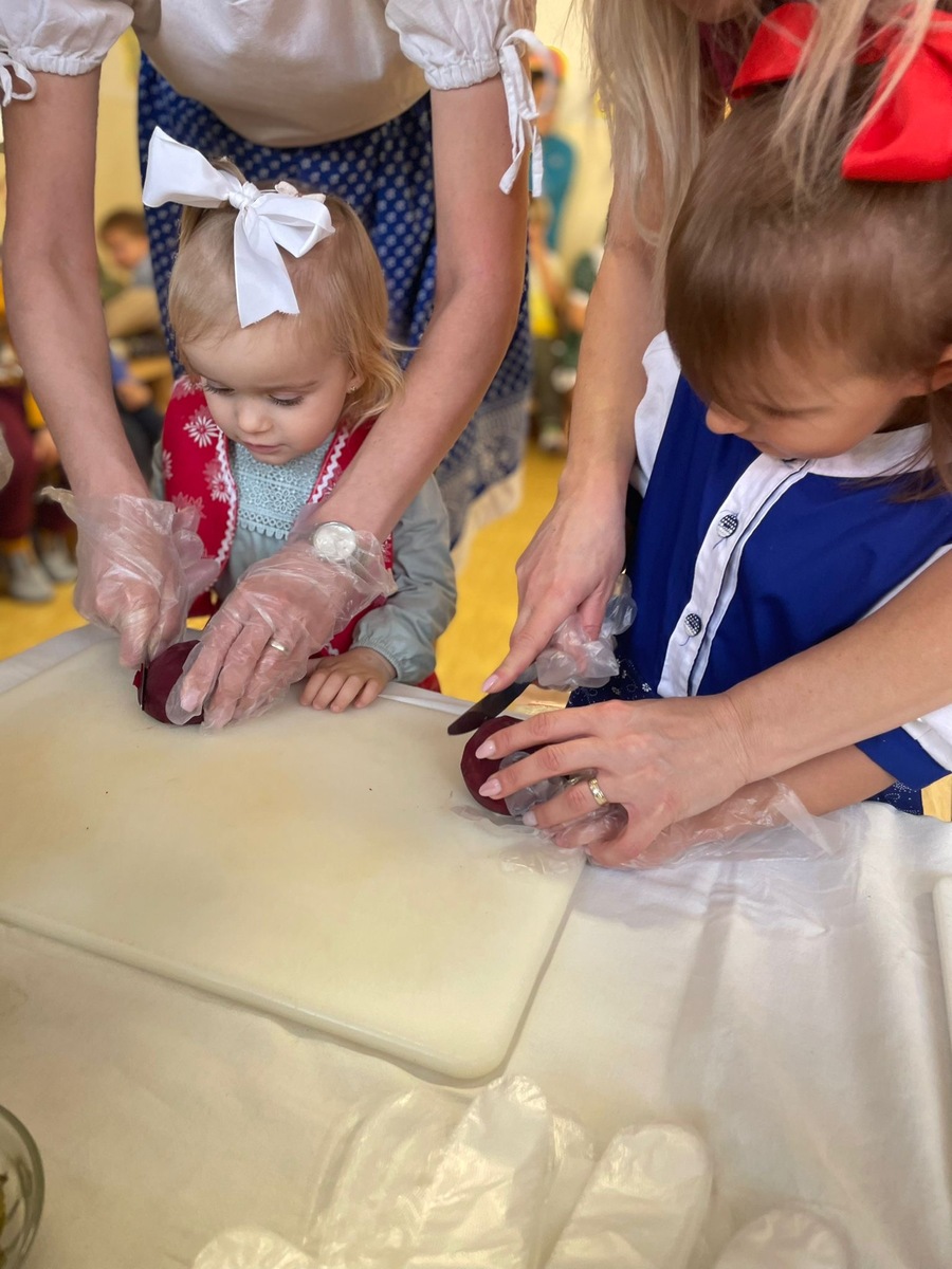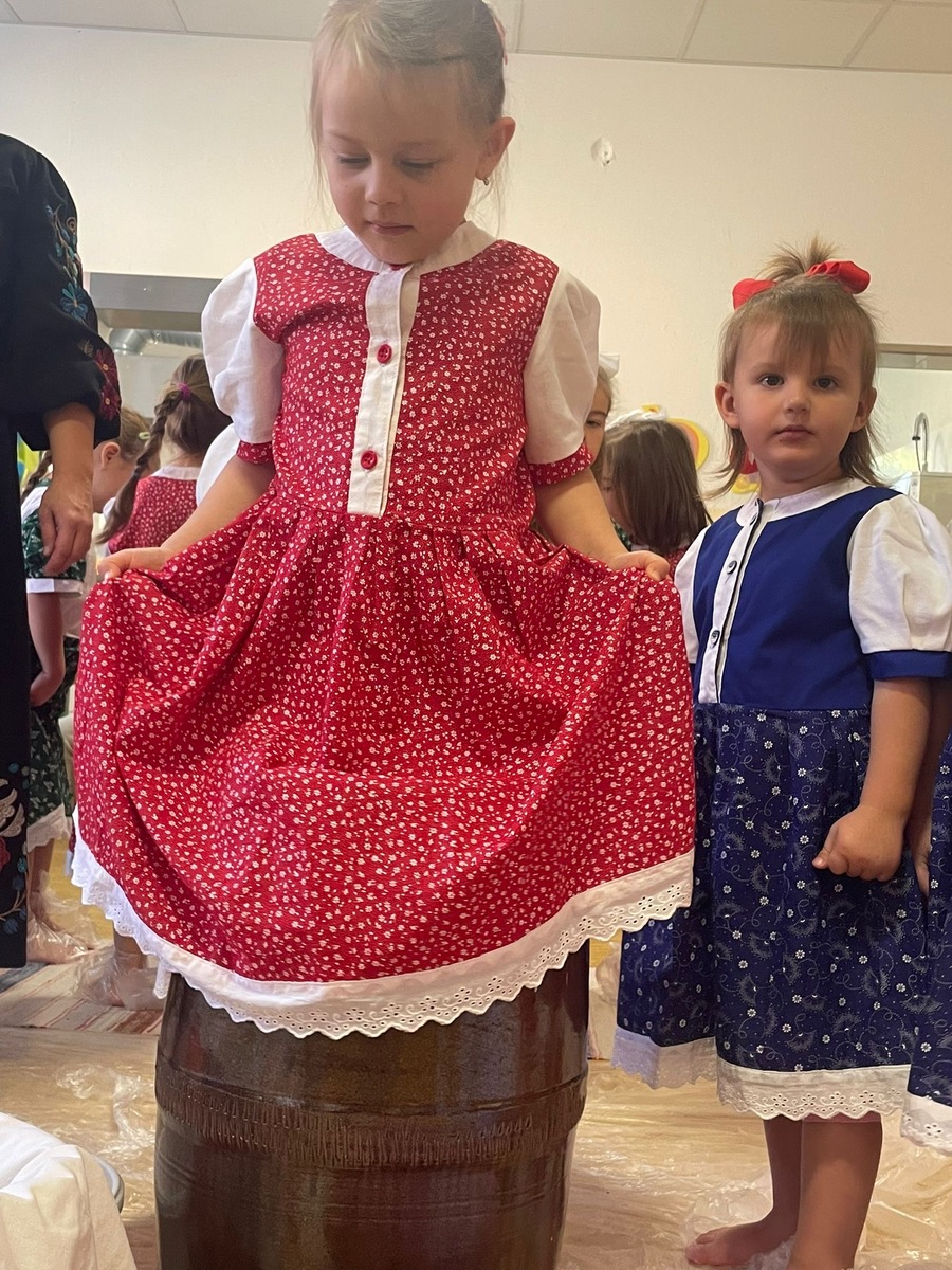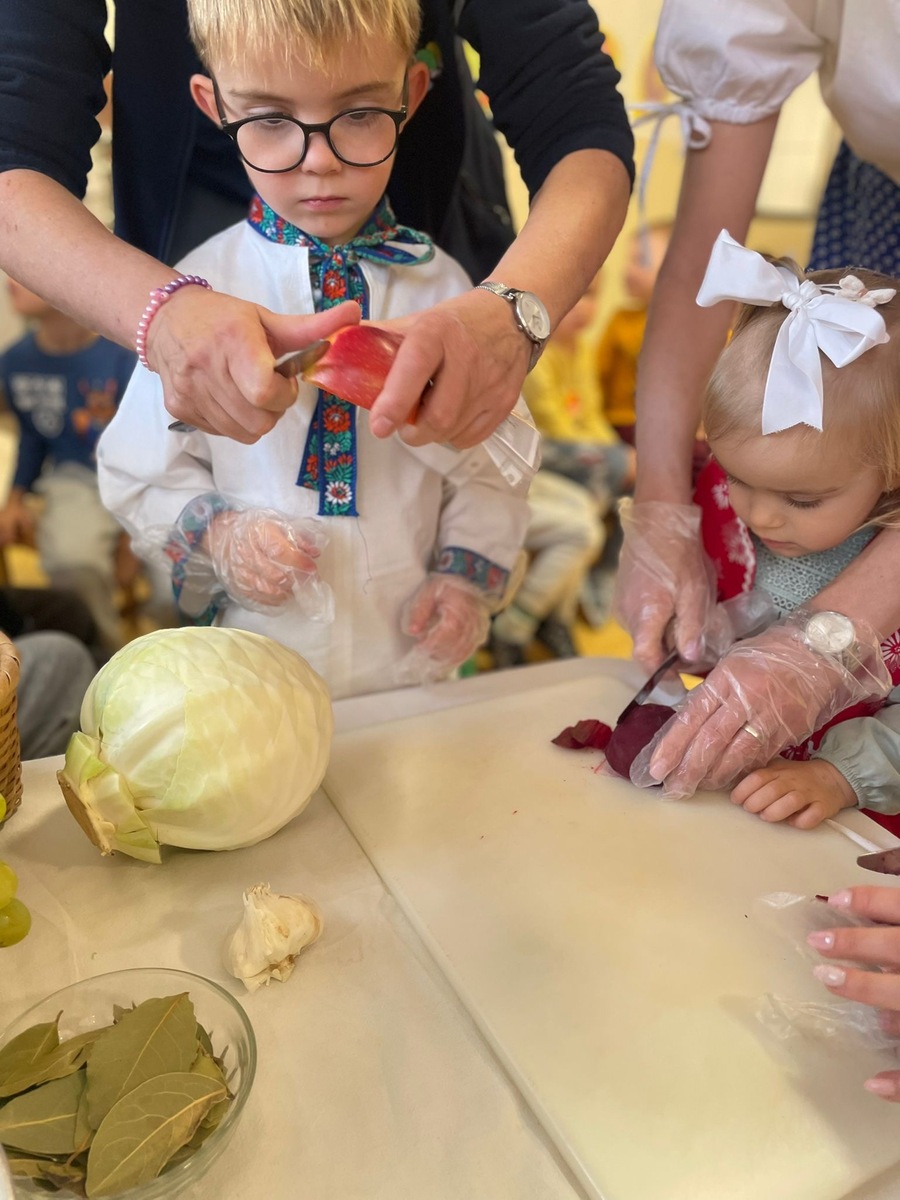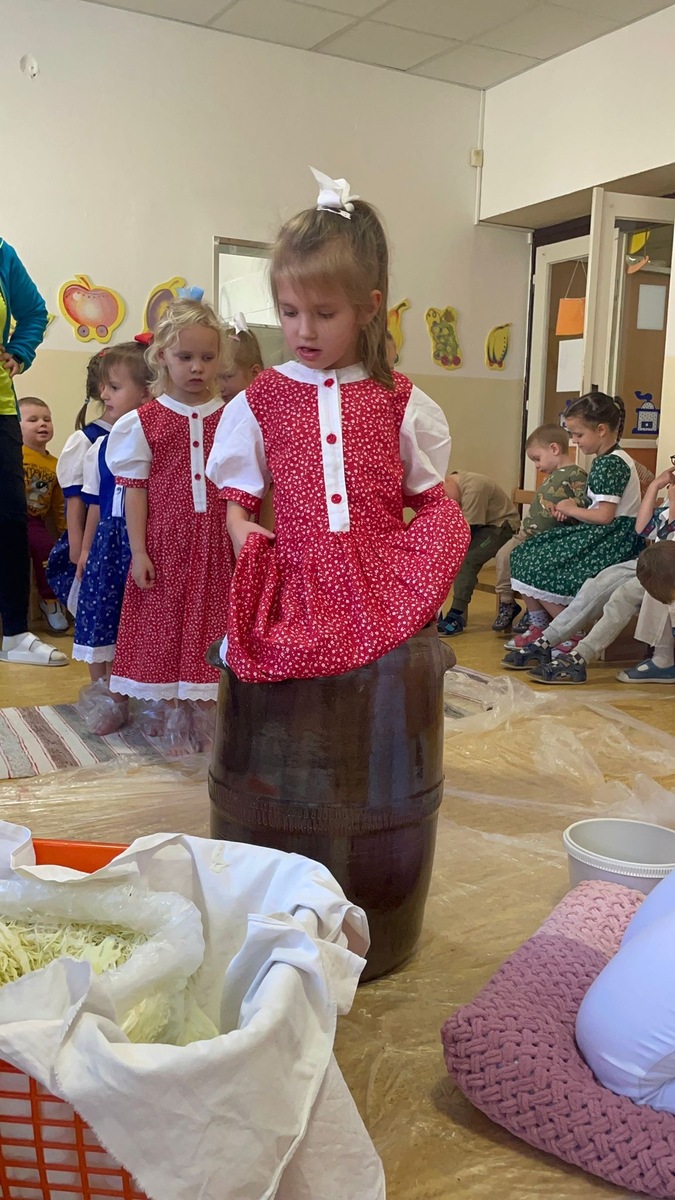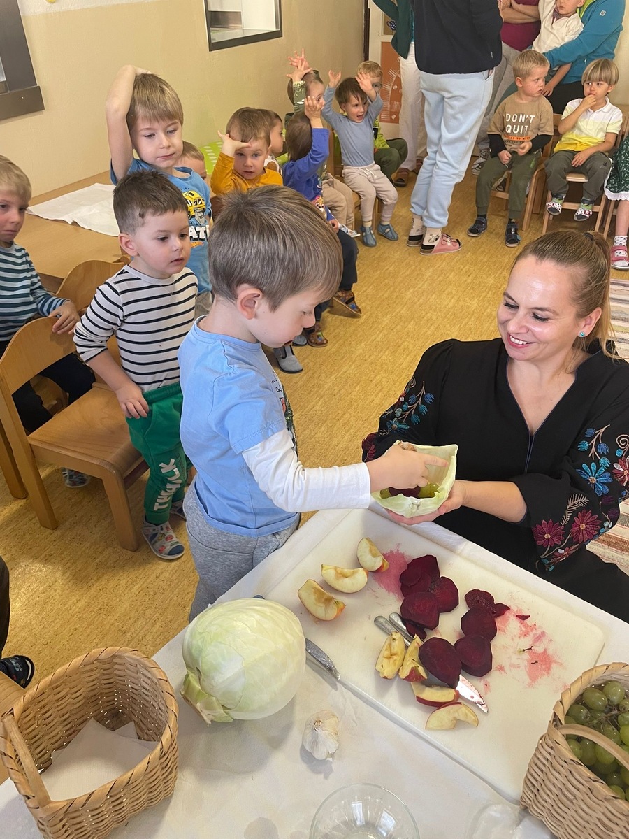 Škôlkarikovia si vyskúšali tlačenie kapusty, ako to kedysi robievali naši starí rodičia