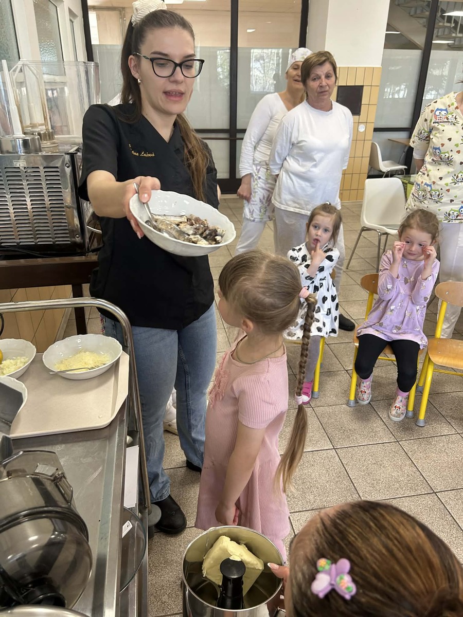 Dnes sme s deťmi zažili krásnu a poučnú akciu v školskej jedálni ????️ Pani kuchárky nám ukázali, čo všetko ich práca obnáša a s akou starostlivosťou pripravujú jedlá každý deň. Deti si mali možnosť vyskúšať pripraviť svoju vlastnú obľúbenú nátierku – tentokrát to bola sardinková so syrom ???????? Deti boli veľmi zvedavé, aktívne a práca v kuchyni ich naozaj bavila. Na záver boli všetky odmenené krásnymi medailami ???? a my sme od nich dostali milé kresby, ktoré nás veľmi potešili ❤️ Ďakujeme pani kuchárkam za ich čas, trpezlivosť a skvelý zážitok!