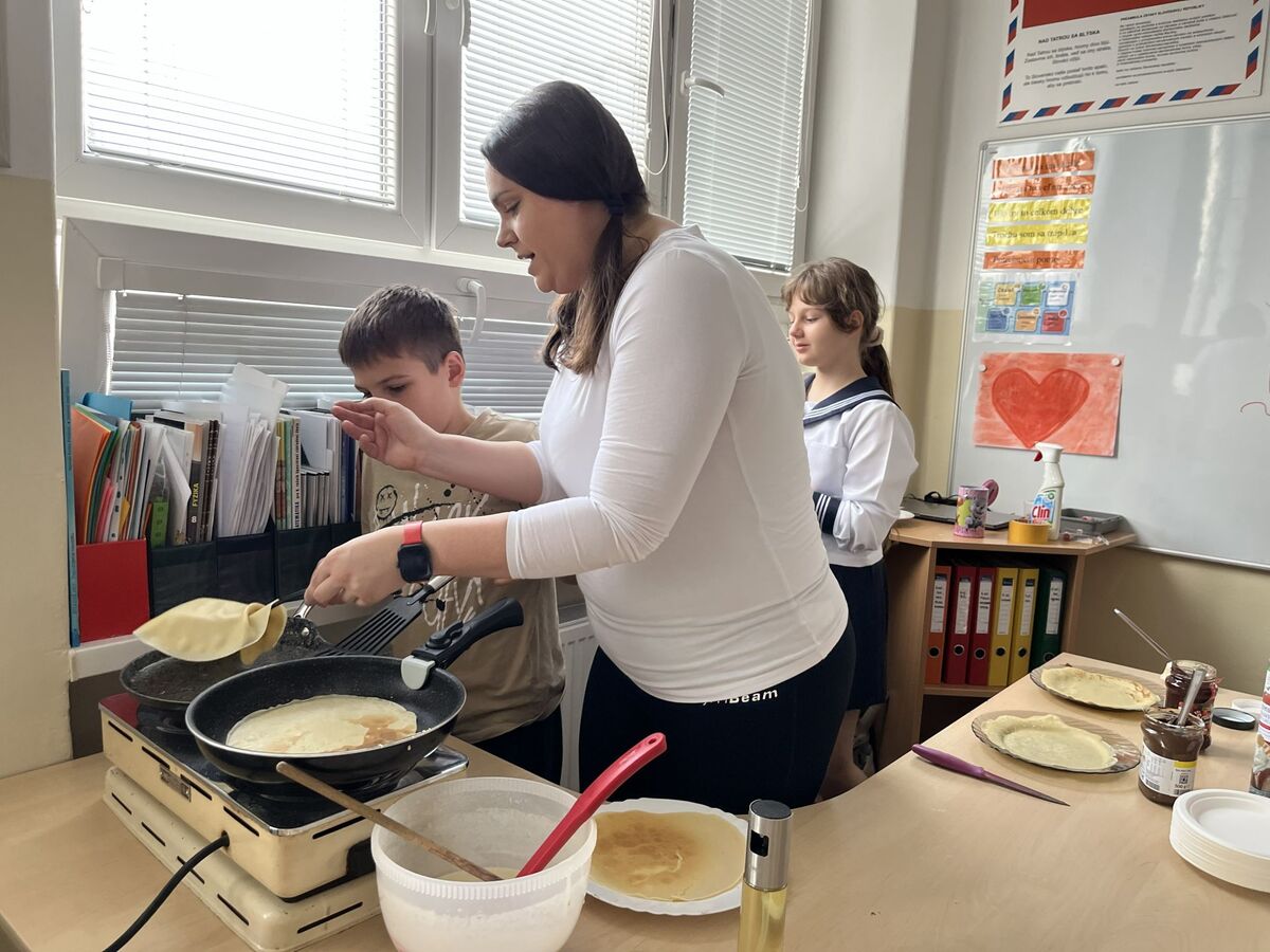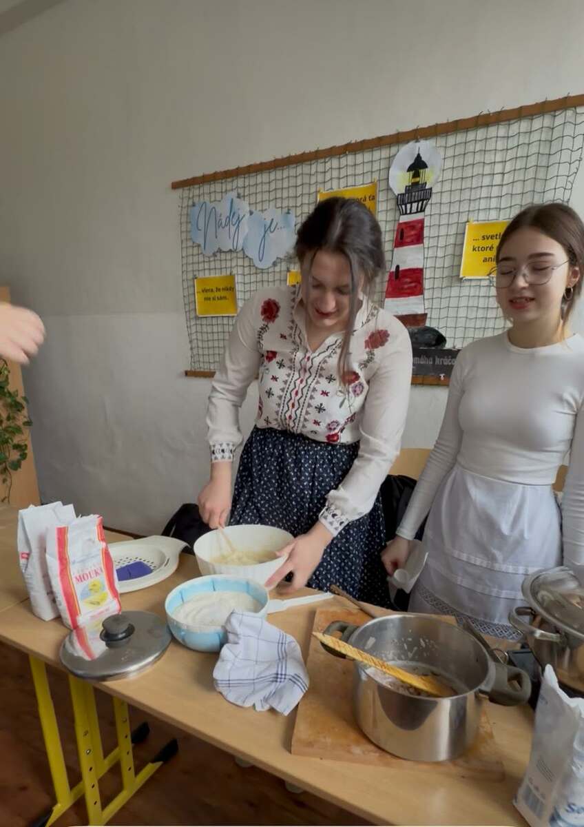 Tento rok sa žiaci zapojili do príprav bazára naozaj naplno. Nešlo len o predaj hotových výrobkov – mnohé dobroty vznikali priamo v priestoroch školy. Voňali u nás čerstvo uvarené halušky, pripravovali sa palacinky a ďalšie jednoduché jedlá, ktoré si deti samy chystali pod dohľadom učiteľov. Táto skúsenosť bola pre nich nielen zábavná, ale aj veľmi cenná – učili sa praktickým zručnostiam, spolupráci aj zodpovednosti.