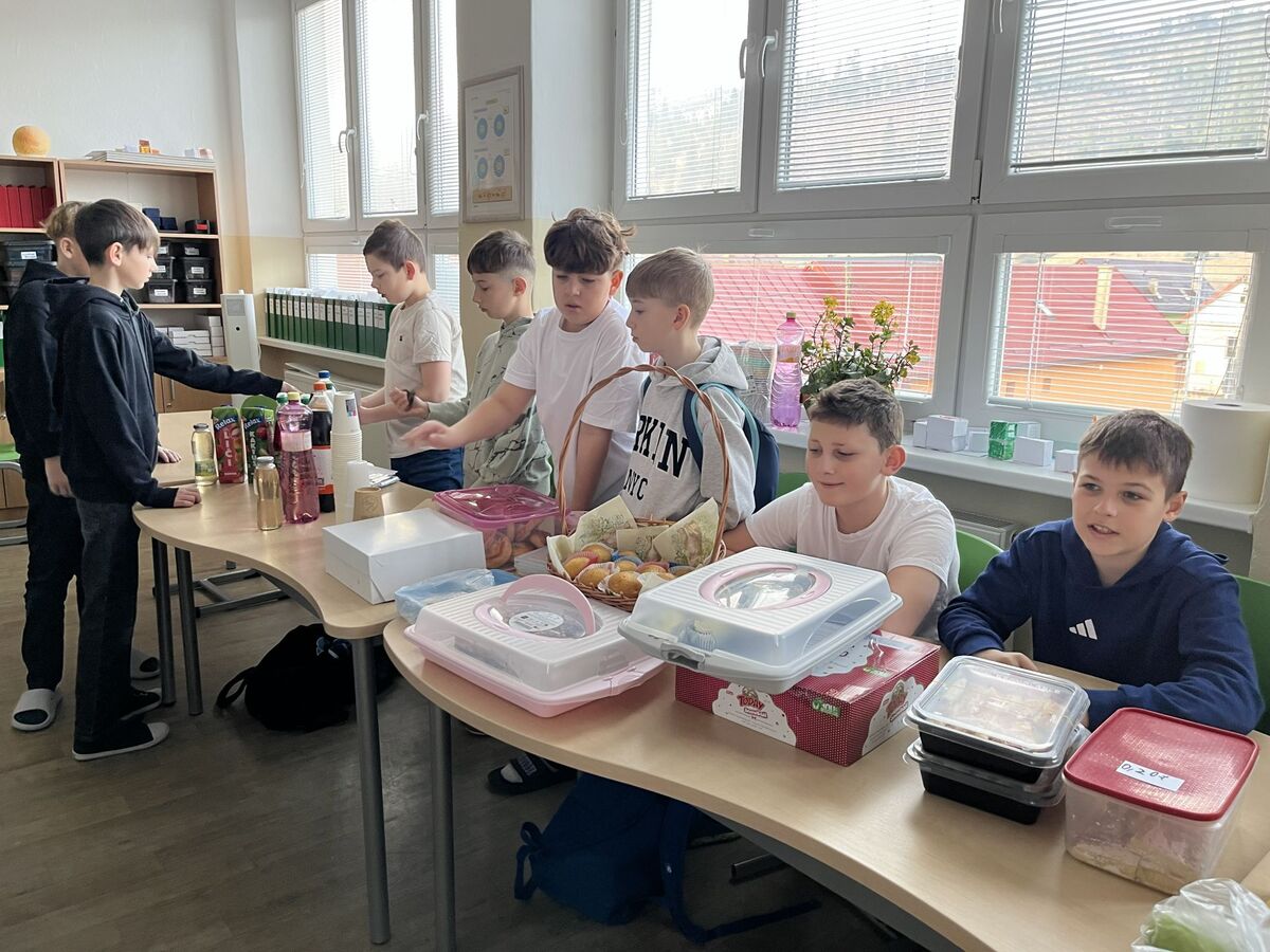 Veľkým krokom vpred bolo aj naše spoločné úsilie o zníženie odpadu. Žiaci si priniesli vlastné obedové boxy, do ktorých si ukladali zakúpené jedlá a koláče. Vďaka tomuto jednoduchému opatreniu sme výrazne obmedzili používanie jednorazových obalov a opäť sme si pripomenuli, že aj malé kroky majú veľký význam.