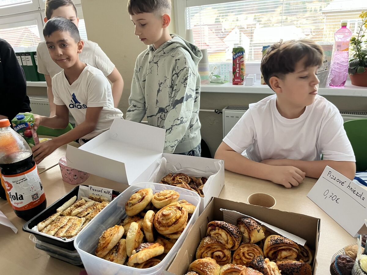 Okrem toho žiaci priniesli aj domáce pochutiny pripravené s pomocou rodičov. Stoly sa prehýbali pod koláčmi, slanými dobrotami či inými chutnými výrobkami, ktoré lákali nielen chuťové poháriky, ale aj oči.