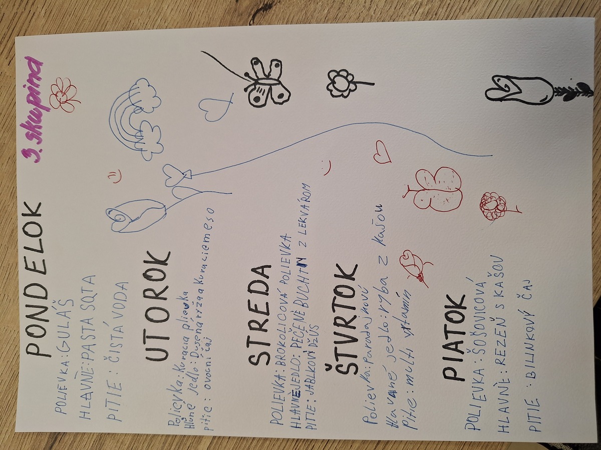 Našim dlhodobým cieľom je okrem iného hlavne zníženie odpadu v našej školskej jedálni. Je to výzva ako sa hovorí " na dlhú trať", ale snažíme sa vymýšľať mnoho aktivít, spolu s našim akčným tímom, aby sme spoločne prispeli k zdravšiemu a krajšiemu prostrediu a naučili sa neplytvať jedlom. Riešenie, ktoré sa nám zdá zatiaľ najúčinnejšie je , keď si deti navrhujú sami jedálne lístky. Postupne sa zoznámili s pravidlami ktoré sa musia dodržiavať pri zostavovaní jedálneho lístku a spolu s pani vychovávateľkami a pani učiteľkami zosumarizujú svoje nápady a odovzdajú vedúcej školskej jedálne. Množstvo odpadu vážia a sledujú, či sa postupne znižuje a či v danom týždni kedy varíme podľa detí je ho výrazne menej. A naozaj je :)