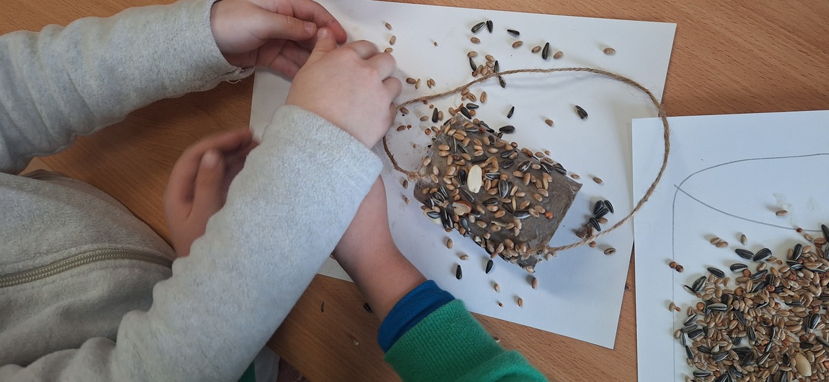Na výrobu kŕmidiel sme potrebovali hrubšie papierové rolky, sadlo, slnečnicové semienka, proso, ovos, jačmeň a špagát na zavesenie. Práca nás veľmi bavila a tešíme sa, že sme mohli vtáčikom aspoň trochu uľahčiť zimu.
