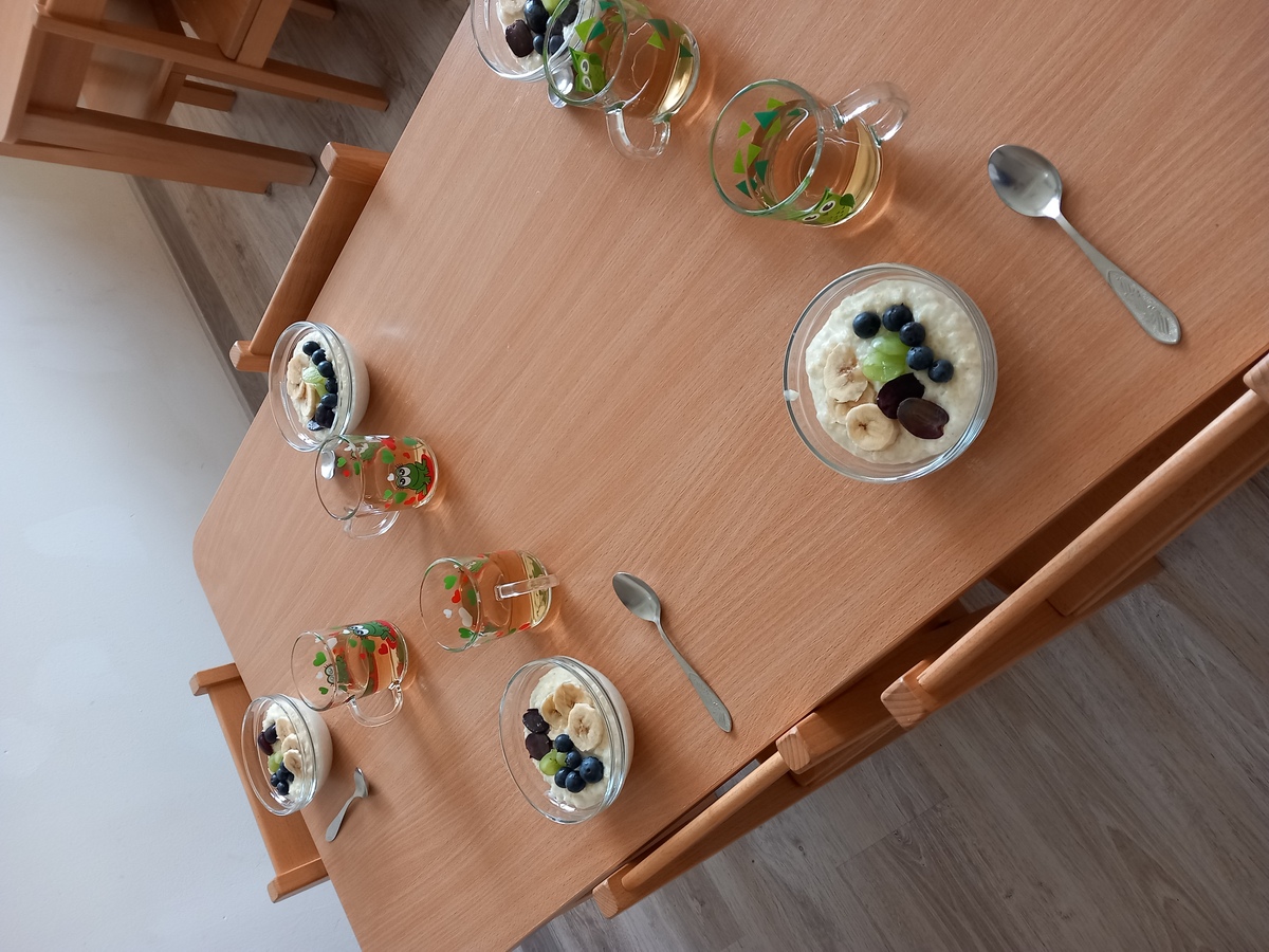 V našej MŠ nám pani kuchárka Boženka každý týždeň pripraví nejakú kašu. Dnes sme mali ryžovo - pšenovú kašu, ktorá nám veľmi chutila. Kaše sa po týždni striedajú - ovsená, pšenová, ryžová alebo ich kombinácia. Deťom ku kaši pripraví aj ovocie alebo ovocné pyré, ktoré si deti samé zamiešajú. Zo začiatku deti nie sú zvyknuté papať takéto kaše, ale keďže im ich pripravujeme každý týždeň, časom si na to zvyknú a na skvelé zdravé kaše spomínajú aj starší kamaráti zo ZŠ Vyšné Hágy, keď sa s nimi stretneme. Na všetko treba trpezlivosť.