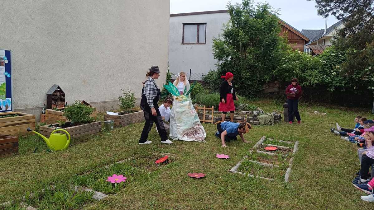 Projekt zameraný na environmentálnu výchovu v rámci programu HRAVO o ekológii a zdravej výžive s Kauflandom bol úspešne zrealizovaný. Deti sa s nadšením zapájali do praktických činností, vďaka ktorým si osvojili základné princípy udržateľného spôsobu života, ochrany prírody a zodpovedného správania k životnému prostrediu. V priebehu projektu žiaci pozorovali opeľovače, hmyzie dravce a včely samotárky v novovybudovanom hmyzom domčeku. Táto aktivita im pomohla lepšie porozumieť ekologickým vzťahom a významu biodiverzity v prírode. Zároveň sa aktívne venovali záhradníckym prácam – sadili jahody do vyvýšených záhonov, starali sa o rastliny a v školskom skleníku pozorovali rast plodín ako reďkovka a hrášok. Vďaka týmto činnostiam si budovali pozitívny vzťah k pôde, rastlinám a zdravej výžive. Každá trieda na prvom stupni si vytvorila vlastnú mikrozáhradku, v ktorej žiaci pozorovali klíčenie a rast mikrobyliniek. Nasledovala ochutnávka na chlebíkoch a rožtekoch, ktoré si deti priniesli na desiatu. Cieľom bolo ukázať, že aj mladé rastlinky sú bohaté na živiny, majú rôzne chute a môžu byť súčasťou zdravej stravy. Zaujímavou súčasťou projektu bola návšteva miestneho včelára, ktorý deťom ukázal včelárske vybavenie, porozprával im o živote včiel medonosných a o význame včelárstva pre človeka aj prírodu. Záverečným vyvrcholením celého projektu bola hravá dramatizácia známej rozprávky Ťahal dedko repku, ktorú pri príležitosti Dňa detí zahrali pedagógovia. Cieľom predstavenia bolo pripomenúť deťom dôležitosť spolupráce a spoločného úsilia pri starostlivosti o svet okolo nás.