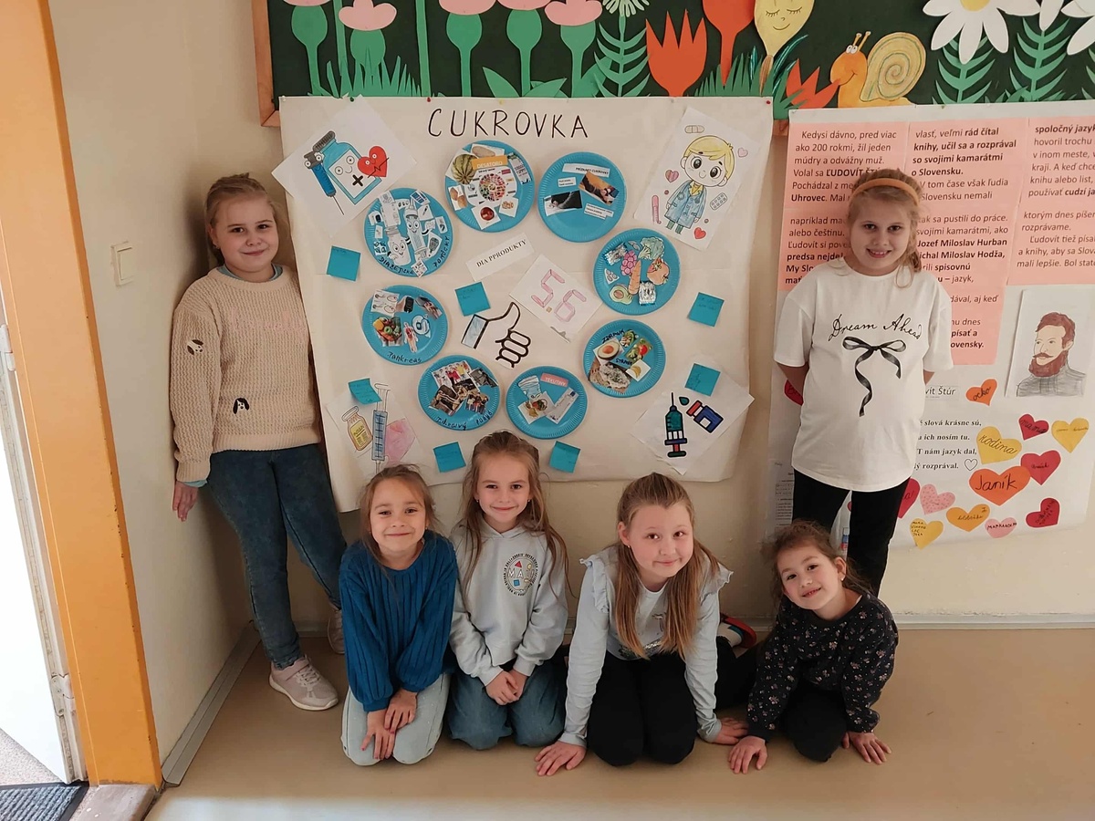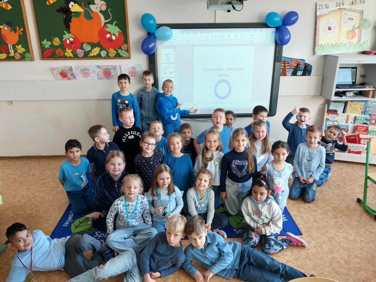 Dňa 14.11.2025 sme na našej škole zrealizovali Svetový deň diabetu. Žiaci 4., 5. a 6. ročníka sa zúčastnili prednášky, na ktorej sa dozvedeli viac o tom, čo je diabetes mellitus. Poukázali sme na to ako plnohodnotne športovať, cestovať a žiť s cukrovkou. Žiaci mali možnosť vidieť praktickú ukážku zisťovania hodnoty hladiny cukru v krvi. V kvíze si preverili svoje nové poznatky. Vypracovali projekty. Mladší žiaci 1., 2. a 3. ročníka si pozreli prezentáciu, ukážku inzulínových pier a nápojov. Spoločne vytvorili plagát a vyfarbovali pracovné listy. V rámci aktívnej prestávky prebiehali pohybové aktivity. V ŠKD si urobili ochutnávku dia produktov.