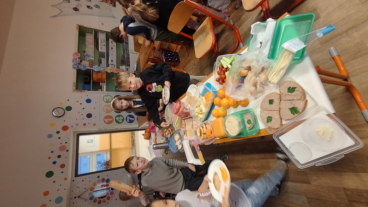 Prípravy na brunch prebiehali už niekoľko dní vopred. Žiaci sa aktívne zapájali do plánovania – navrhovali, čo by chceli priniesť, diskutovali o zdravých aj obľúbených dobrotách a učili sa pritom, ako si rozdeliť úlohy. Každý mal svoju malú zodpovednosť, či už išlo o sladké pečivo, ovocie, zeleninu alebo nápoje. Spoločne sme sa rozprávali aj o zásadách stolovania a kultúrneho správania pri jedle.