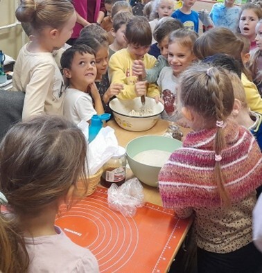 V pondelok sa deti zoznámili s prípravou tradičného chleba – videli, ako sa miesi cesto, kysne aj pečie. Vyskúšali si miesenie cesta vlastnými rukami, spoznali rôzne druhy múky a ochutnali domáce chlebíky. Uvedomili si, že chlieb je základná potravina, ktorá patrí k zdravej a vyváženej strave.
