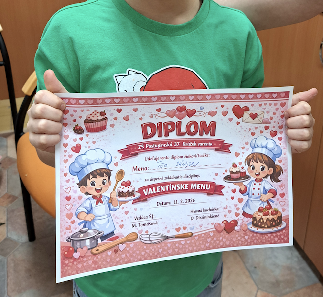 Dňa 12. februára 2026 sme s deťmi na krúžku varenia zorganizovali špeciálne varenie spojené so súťažou o najkrajšie valentínske menu