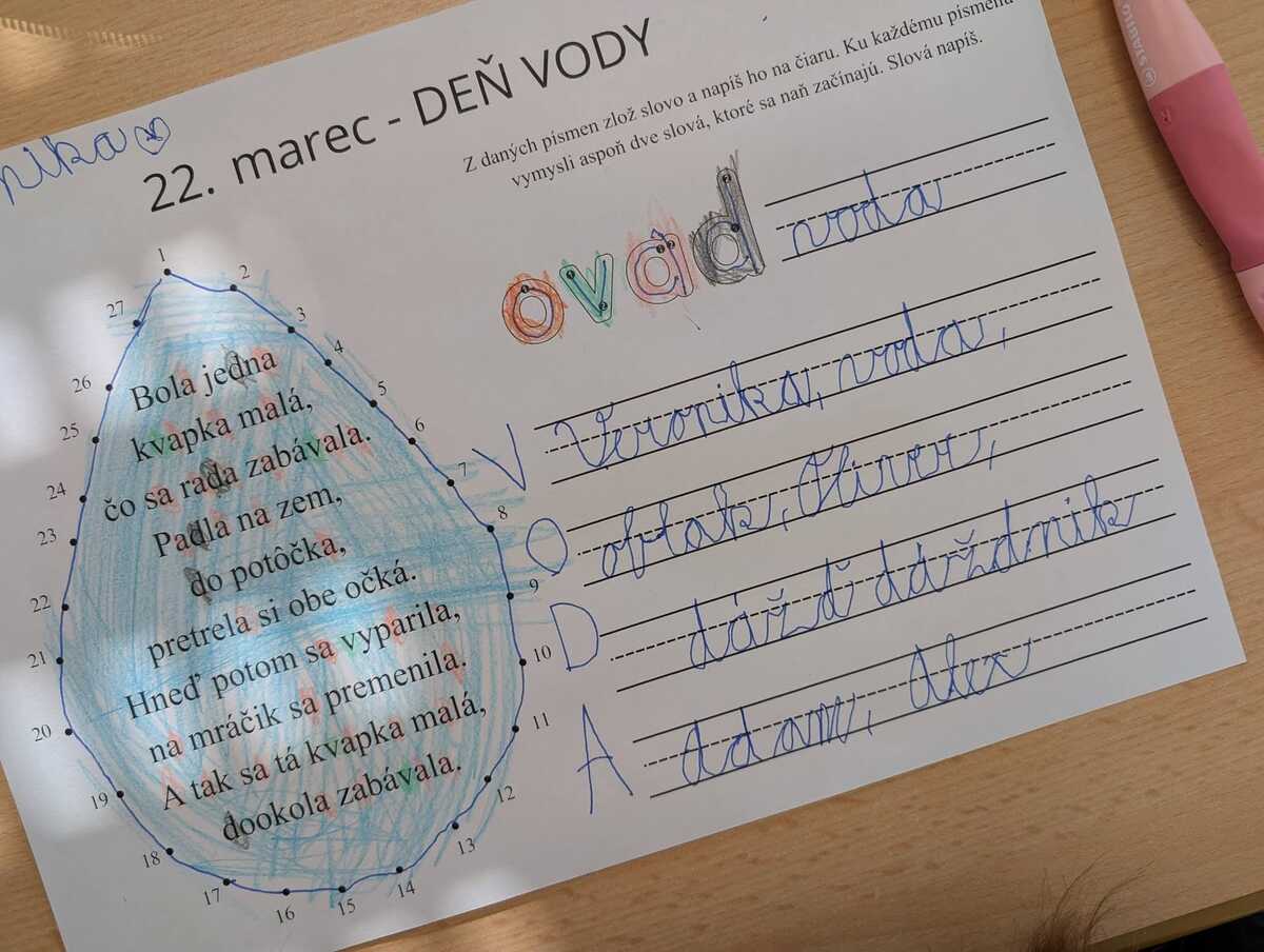 Naši prváci oslávili Svetový deň vody netradičným spôsobom, ponorili sa do sveta rozprávok Hansa Christiana Andersena. Počas celého zážitkového dňa spájali silu fantázie s dôležitými poznatkami o ochrane prírody, pričom v skupinách vytvárali vlastné pojmové mapy a autorské komiksy. Práve cez príbehy a knižné ilustrácie objavovali hlboký význam vody, jej kolobeh v krajine a nevyhnutnosť ňou neplytvať. Tento deň im ukázal, že kniha a príroda patria neodmysliteľne k sebe, pričom spoločne rozvíjajú ich slovnú zásobu, predstavivosť aj schopnosť kriticky premýšľať o svete okolo nás.
