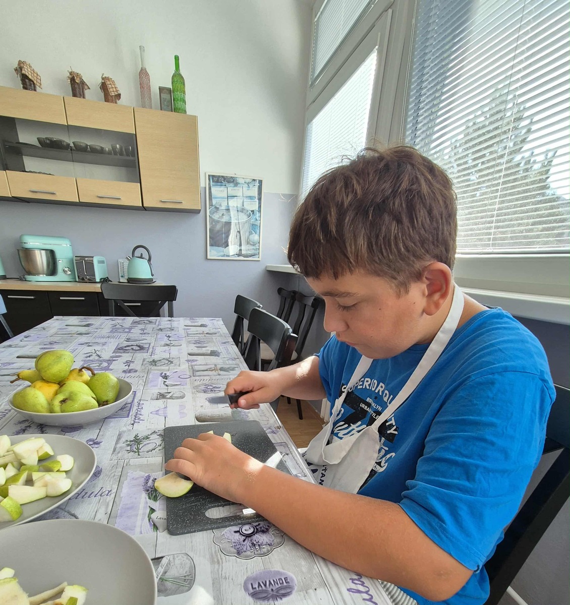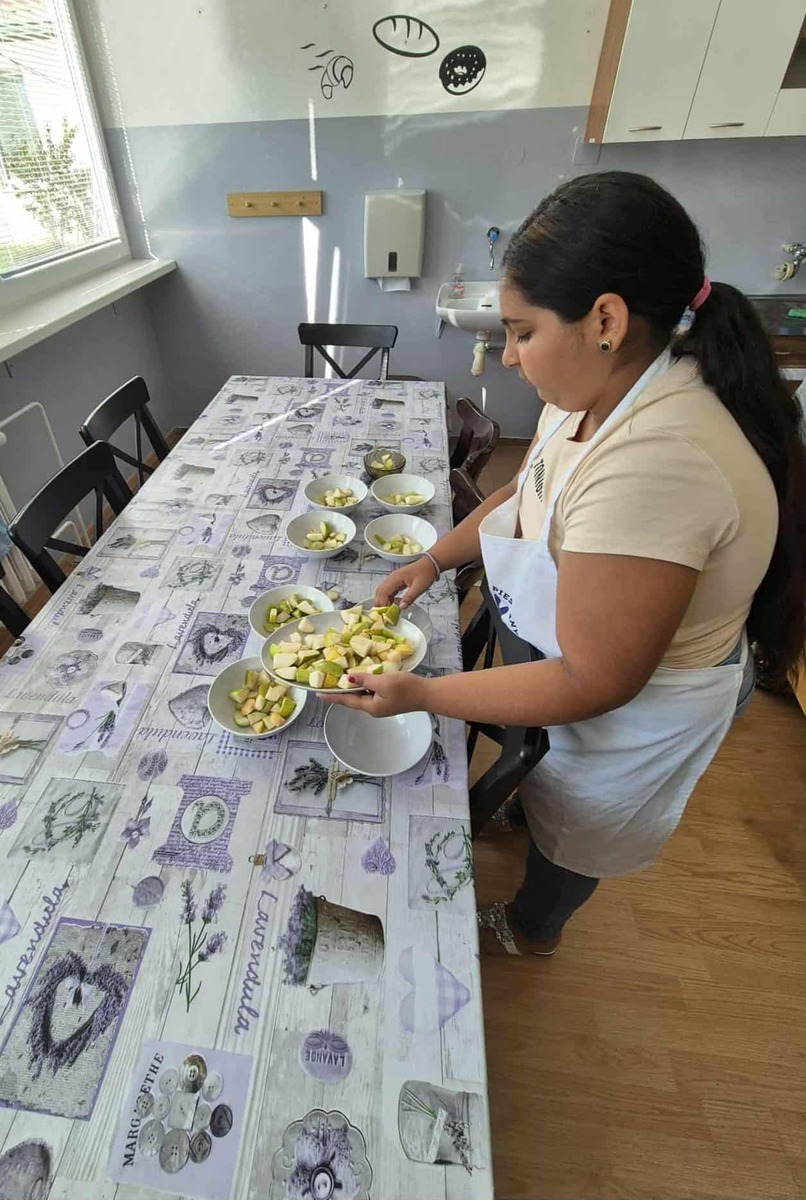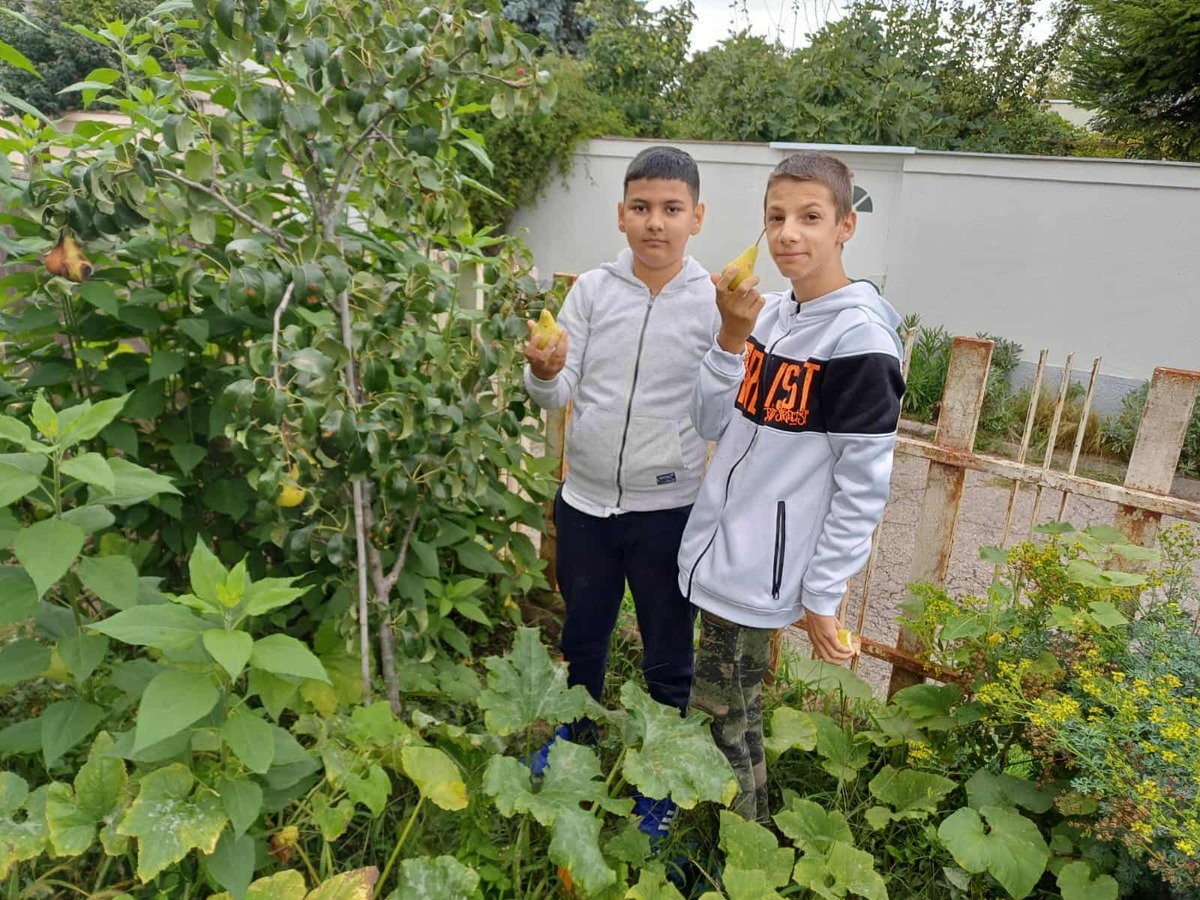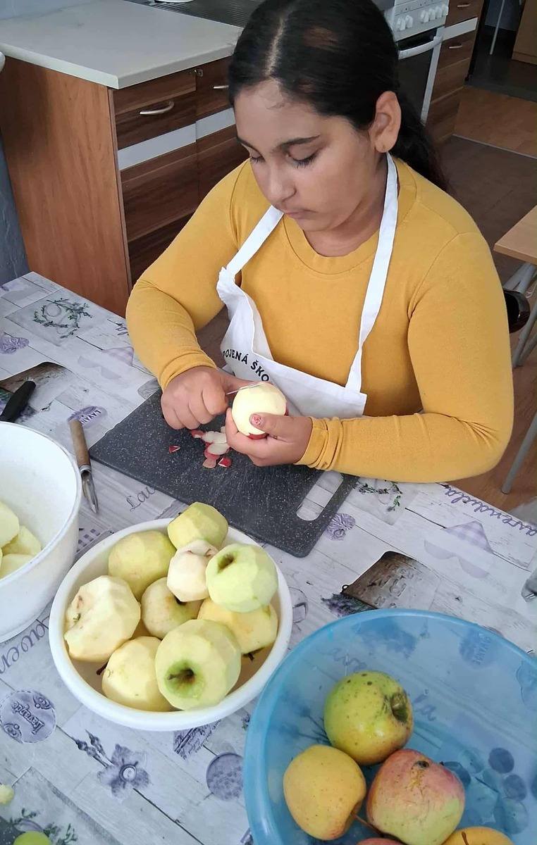S radosťou môžeme povedať, že práve naše stromy nám priniesli prvé plody – chutné jablká a hrušky. Tieto plody sme pozbierali, pretriedili a spracovali – časť z nich sme ponúkli všetkým žiakom školy v rámci „Zdravej desiaty“, ďalšie sme nastrúhali a zamrazili pre neskoršie použitie pri varení a pečení. Niektoré jablká sme aj usušili, aby sme ich mohli využiť počas celého školského roka.