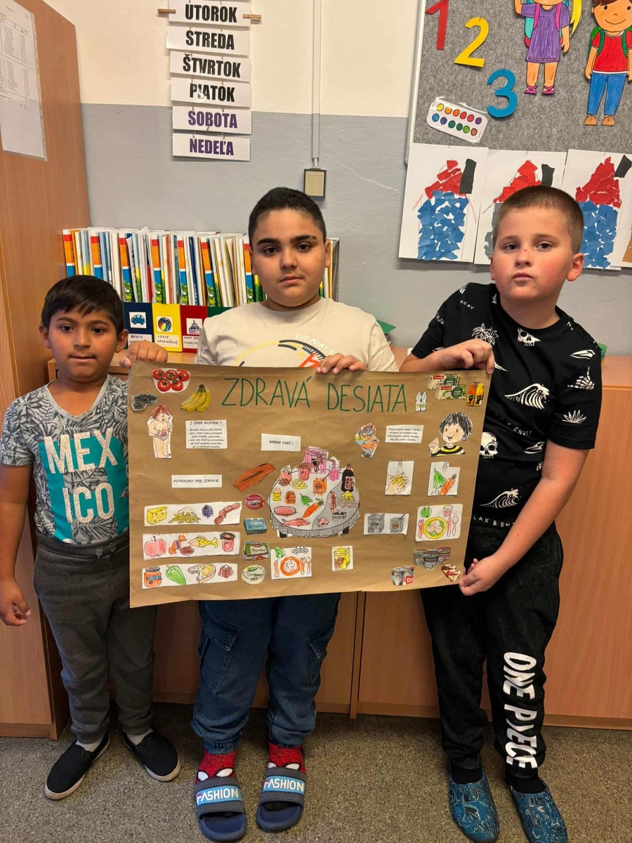 Do projektu Zdravá desiata sa zapojili všetky triedy. Každá trieda sa téme venovala po svojom – niektorí žiaci vytvárali tajničky a kvízy, iní plagáty o tom, ako má vyzerať zdravá desiata, a ďalší pripravili ukážky desiatových boxov plných ovocia a zeleniny. O zdravej desiate sme sa rozprávali v každej triede a spoločne sa snažíme tieto zásady aj dodržiavať v každodennom živote. Cieľom našej Zdravej desiaty je viesť žiakov k zdravším stravovacím návykom – aby každá desiata obsahovala viac ovocia, zeleniny a menej sladkostí. Snažíme sa, aby bola vyvážená, chutná a šetrná k prírode aj k potravinám. Sme radi, že sa nám darí spájať starostlivosť o prírodu s podporou zdravého životného štýlu – a to všetko priamo z našej školskej záhrady!